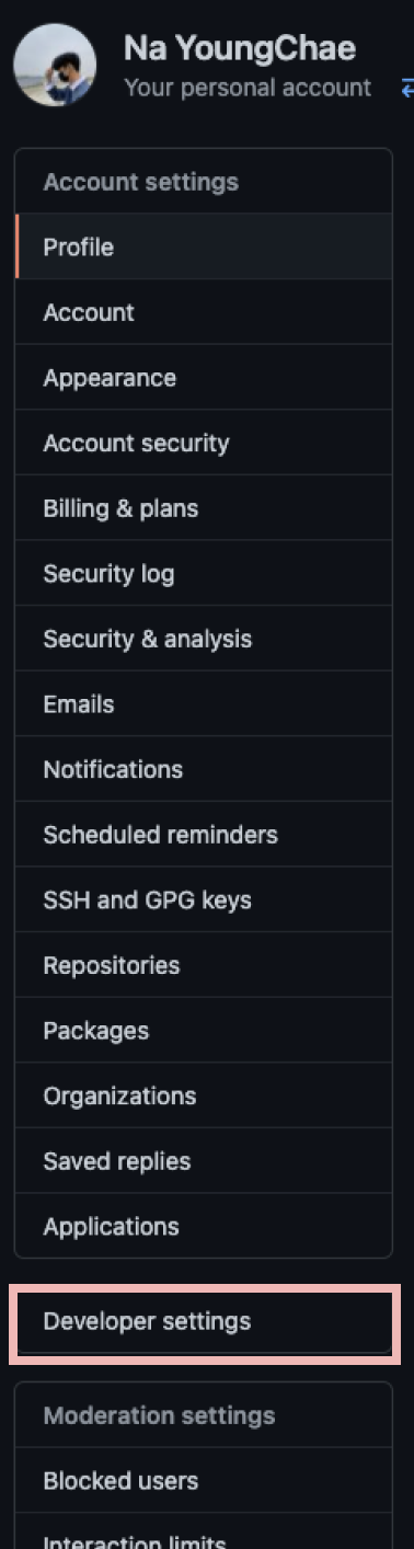 깃허브 홈페이지에 먼저 들어가서, 프로필에서 settings 클릭